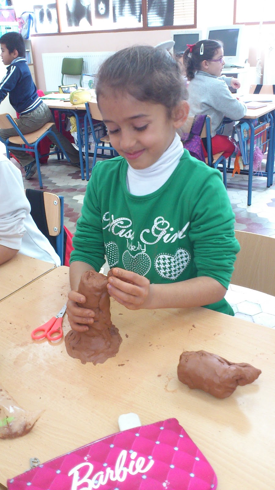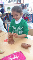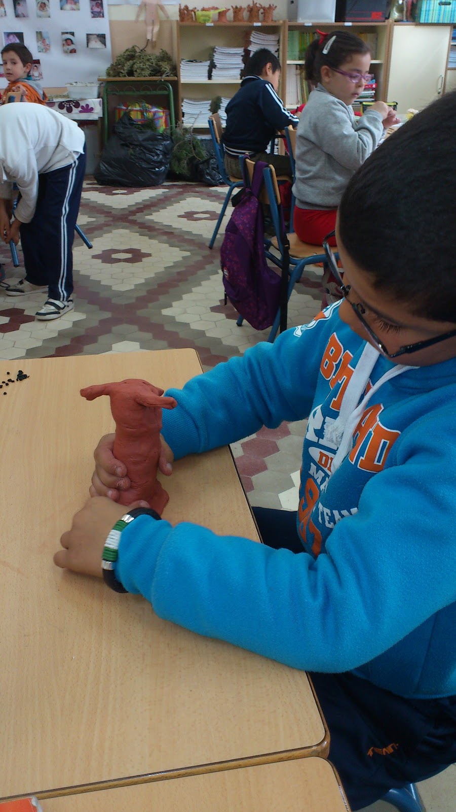 Paso nº 1: Con una pieza de barro moldeamos un tronco y lo rayamos con un punzón imitando la